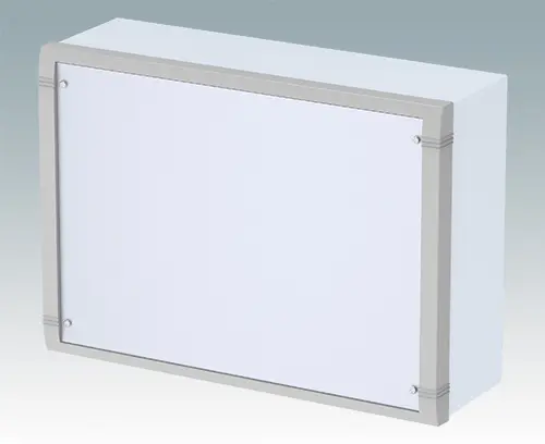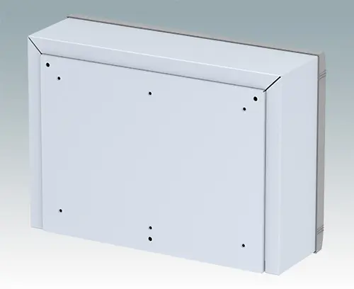 Modern aluminum wall mount enclosure for indoor electronics equipment. The enclosure provides total access to the electronics during installation on the wall. Stylish design with die cast front bezel, top cover and 'L' shape rear panel. Order front panels separately.