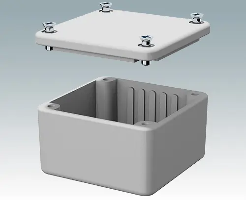 Highly durable and shock resistant diecast enclosure. Vertical guides and stand-offs provided in the base for locating PCBs and assemblies. IP 65 (NEMA 4) sealing gasket and external mounting brackets available as accessories.