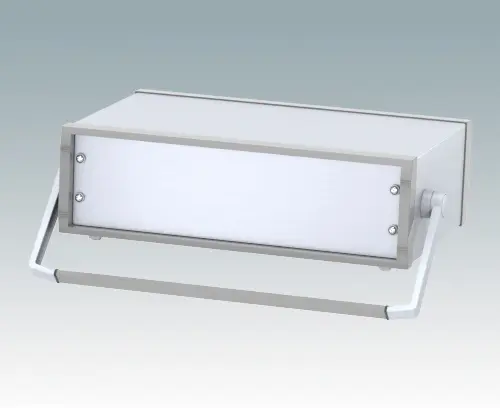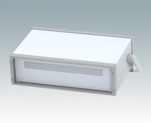 Stylish 19" instrument case for mounting 3U subracks, chassis or front panels. Portable version with metal handle/bail arm. Robust design with two die cast front bezels and fabricated case body. The base panel and rear panel are ventilated. Internal chassis runners support the equipment. Supplied with pre-fitted with ABS tilt feet.