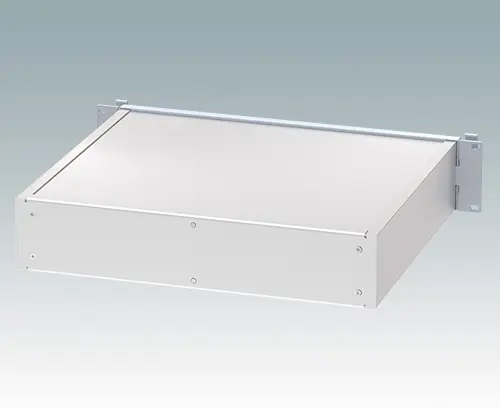 Modern and robust 19" rack case with integrated 'comfort handles'. All aluminum design with attractive die cast front bezel, extruded side panels with internal PCB/chassis guide rails, rear panel and flat top and base panel. Open front panel aperture means the case does not have to be removed from the rack in order to access the electronics. Base panel is punched to accept accessory tilt feet. Order front panels separately.