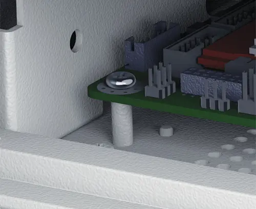 Also suitable for use in combination with M5600001 PCB Mounting Kit, to secure PCBs to the plastic mounting pillars. Fixing points are provided in the following enclosures for this kit: COMBIMET 19", VERSAMET 19", UNIMET 19", UNIDESK, UNIMET, UNIMET-PLUS, DATAMET