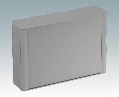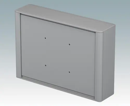 Modern and highly attractive aluminum instrument enclosure for fitting displays, touch screens and HMI electronics. VESA MIS-D 100 mounting points are provided on the rear panel for fitting the unit to a standard VESA control arm or mounting bracket. Stylish front and rear diecast bezels are fitted to the case body. Clip-on trims at the front and rear hide all the assembly screws, giving a very professional appearance. The base panel on the underside provides space for cable entry. M3 PCB mounting pillars are provided inside. The assembly extrusions also have M3 mounting holes and guide rails for fitting internal plates. M4 earth studs are fitted to all parts; some studs can also be used with retaining straps to hold the front/rear panels during maintenance. Front panels are sold separately. Accessories include a wall mounting kit, a pole mounting bracket and an internal mounting plate.