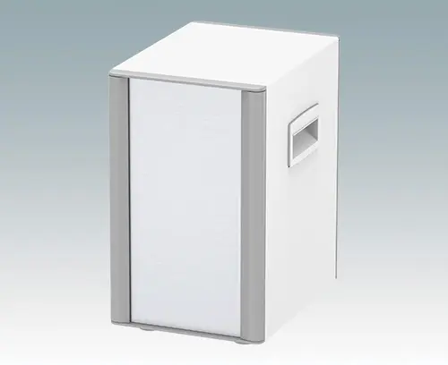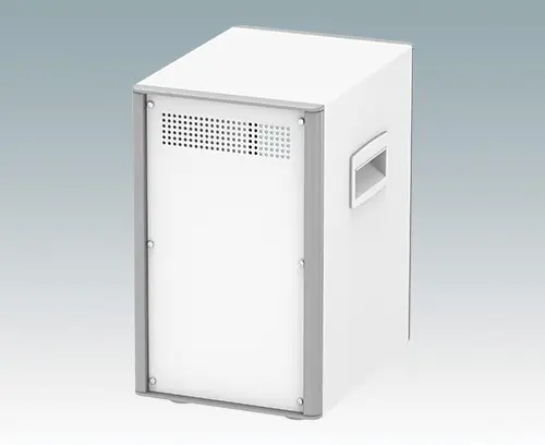 Highly attractive tower style aluminum enclosures for instrumentation. Space-saving footprint maximizes tabletop or workstation space. Modern and cohesive design with no visible fixing screws. Diecast front and rear bezels fit flush in the case body. Snap-on front and rear trims hide the case and front panel screws. Ventilation holes in the base and rear panel. Internal chassis for mounting three or four shelves (accessories) for PCBs and assemblies. M4 earth points on all panels. Supplied with side handles and non-slip ABS feet. Order front panels, shelves and PCB guides separately. Order your own fully customized version.