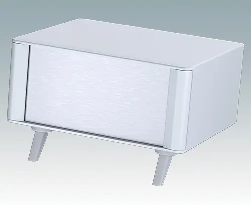 Modern and highly attractive instrument enclosure for desktop electronics. Stylish front and rear bezels are fitted to the aluminum case body. Clip-on trims at the front and rear hide the assembly screws and front panel screws, giving a very professional appearance. The pre-assembled internal chassis is supplied with four M3 PCB mounting pillars fitted in the base. The internal chassis can also be fitted with 5 slide-in PCBs using the accessory snap-in guide M6490020 (order 2 guides per PCB).