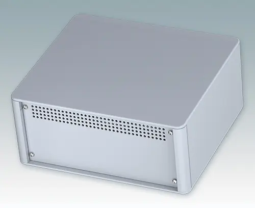 The case is supplied with a rear panel and four ABS feet with tilt legs. Ventilation slots are provided in the base and rear panel. Order front panels separately.
