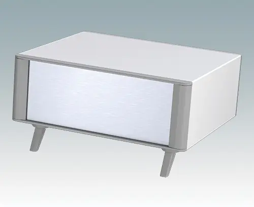 Modern and highly attractive instrument enclosure for desktop electronics. Stylish front and rear bezels are fitted to the aluminum case body. Clip-on trims at the front and rear hide the assembly screws and front panel screws, giving a very professional appearance. The pre-assembled internal chassis is supplied with four M3 PCB mounting pillars fitted in the base. The internal chassis can also be fitted with 5 slide-in PCBs using the accessory snap-in guide M6490010 (order 4 guides per PCB).