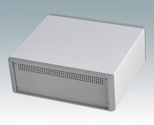 The case is supplied with a rear panel and four ABS feet with tilt legs. Ventilation slots are provided in the base and rear panel. Order front panels separately.