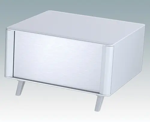 The case is supplied with a rear panel and four ABS feet with tilt legs. Ventilation slots are provided in the base and rear panel. Order front panels separately.