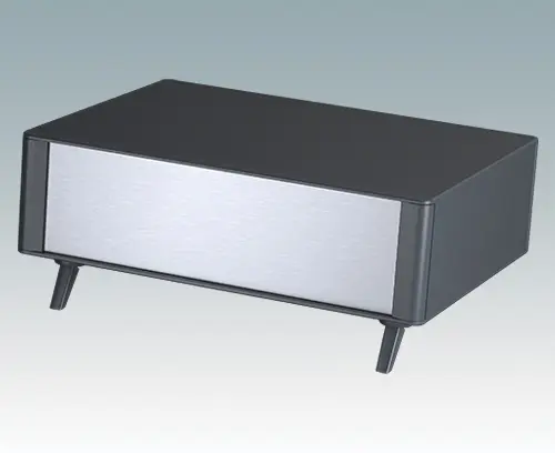 The case is supplied with a rear panel and four ABS feet with tilt legs. Ventilation slots are provided in the base and rear panel. Order front panels separately.