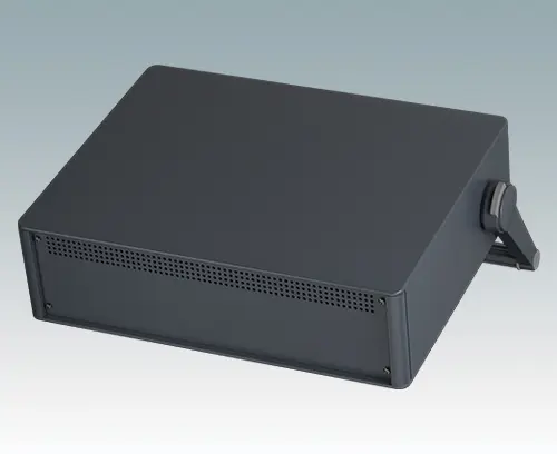 The case is supplied with a rear panel and four ABS feet with tilt legs. Ventilation slots are provided in the base and rear panel. Order front panels separately.