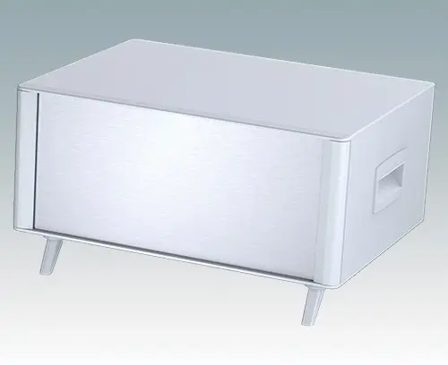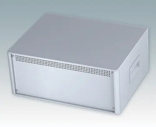 The case is supplied with a rear panel, two ABS side handles and four ABS feet with tilt legs. Ventilation slots are provided in the base and rear panel. Order front panels separately.