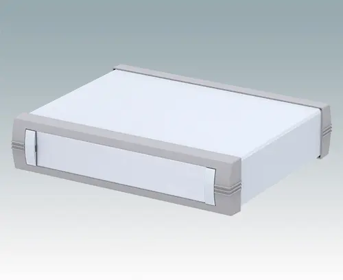 Advanced instrument enclosure for desktop electronics. Stylish front and rear bezels are fitted to the fabricated case body. Pre-assembled internal chassis supplied with four snap-in PCB guides. Two standard guide positions - additional positions can be punched on demand. The case is supplied with a rear panel and four non-slip feet. Order front panels separately.