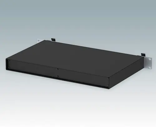 Modern and versatile 19" rack cases with anodized front panel and integrated 'comfort-handles'. Folded aluminum case body with all fixings hidden on the underside. Removable base and rear panel for easy access.